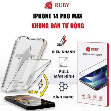 Kính cường lực Iphone 14 Pro Max chính hãng Ruby khung dán tự động
