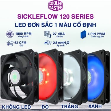 Quạt tản nhiệt case máy tính Cooler Master SickleFlow 120 White, Red, Blue