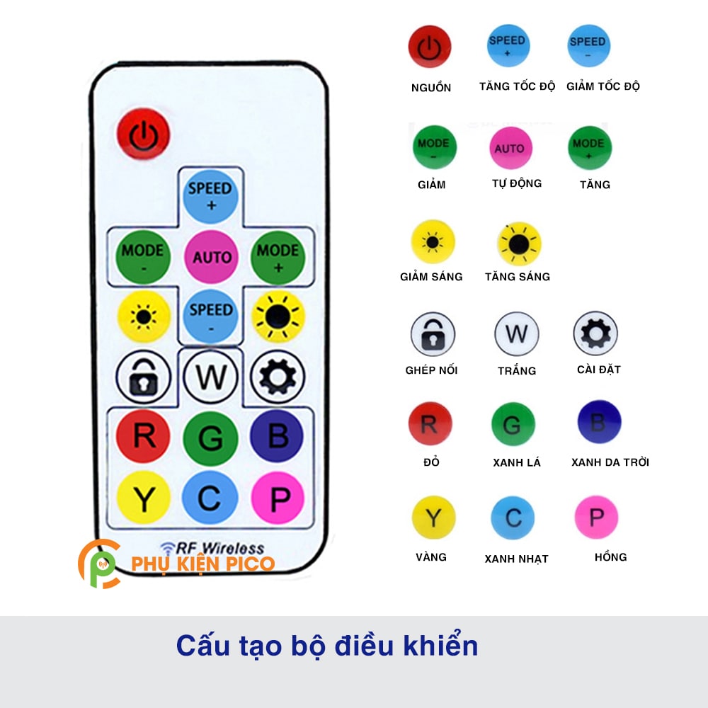- Bộ Remote được sử dụng nhiều trong các hộ gia đình sử dụng dây led trang trí trong phòng và điều chỉnh màu cho thiết bị máy tính.