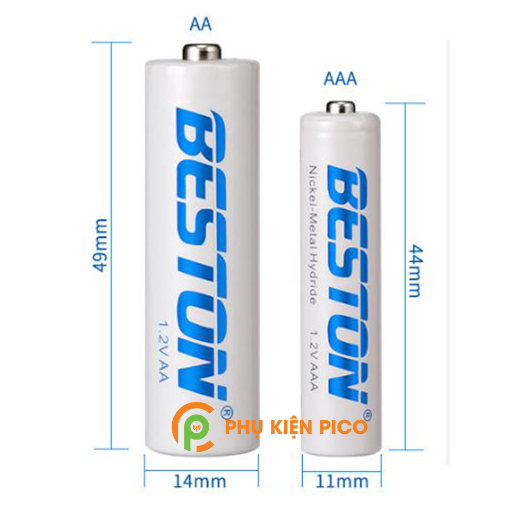 - Thông số pin sạc Beston AA là dòng pin hiệu suất cao, dòng xả lớn Ni-MH an toàn và ít độc hại hơn pin Ni-Cd thông dụng.