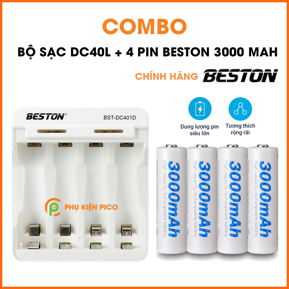Bộ sạc DC40L và 4 Pin sạc lại Beston AA 3000 mAh chuyên dùng cho Micro Karaoke máy ảnh – combo2