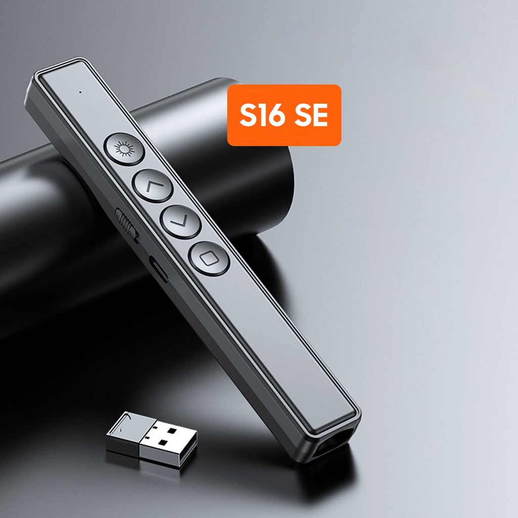 Bút trình chiếu S16 SE bút thuyết trình Powerpoint Laser điều khiển từ xa 100M kết nối USB pin sạc