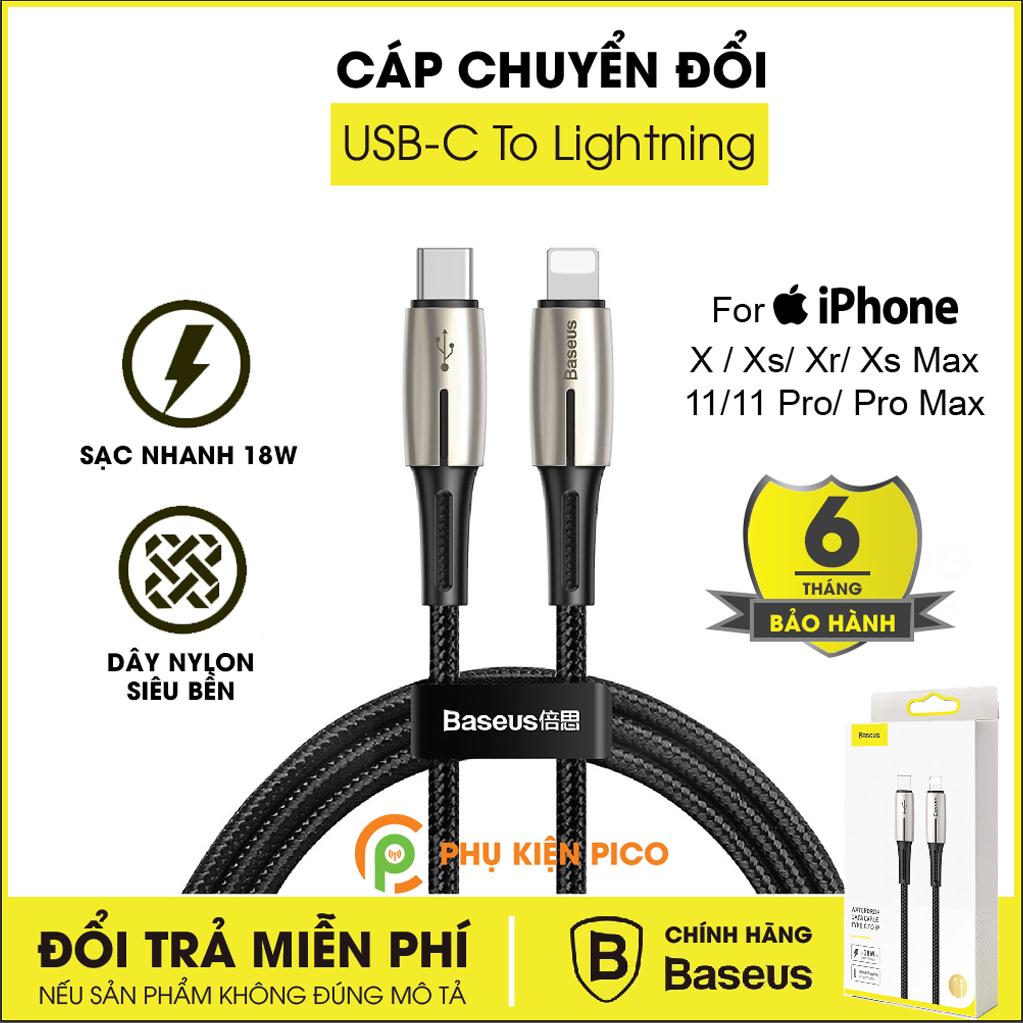 • Cáp chuyển đổi Type C to Lightning chính hãng Baseus được thiết kế chuyên dùng để sạc pin đồng bộ dữ liệu tốc độ cao cho Iphone X / Iphone 11 / Iphone 11 Pro / Iphone 11 Pro Max.