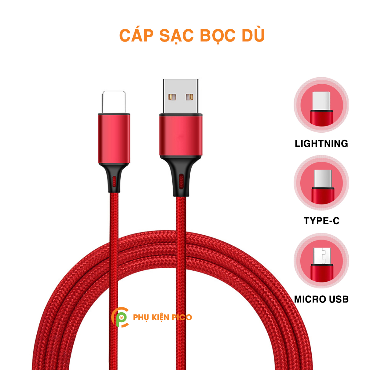 Cáp sạc Iphone bọc dù Lightning TypeC Micro Usb – Cáp sạc nhanh iphone chống đứt