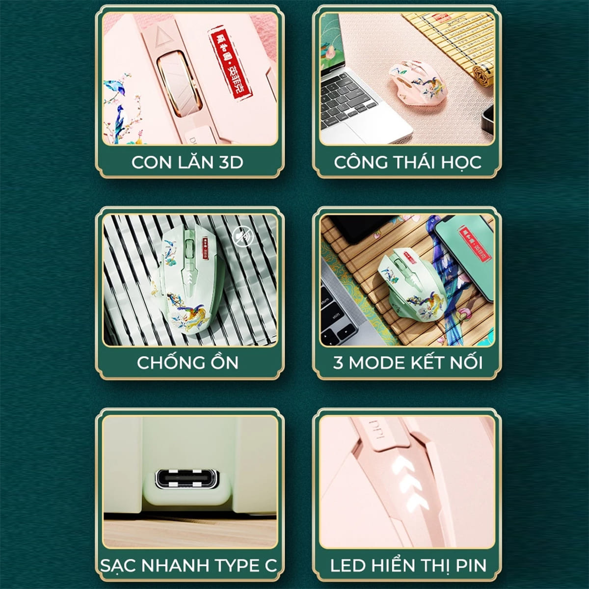 Chuột Bluetooth không dây Gaming Inphic A10 phiên bản Tết Giáp Thìn cho game thủ văn phòng máy tinh laptop