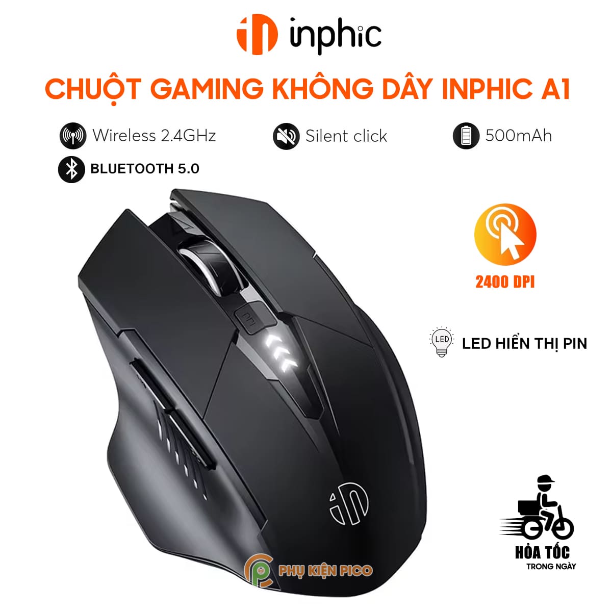 Chuột gaming không dây Inphic A1 pin sạc – Chuột Bluetooth Inphic A1 chơi game 2400 DPI máy tính laptop pc