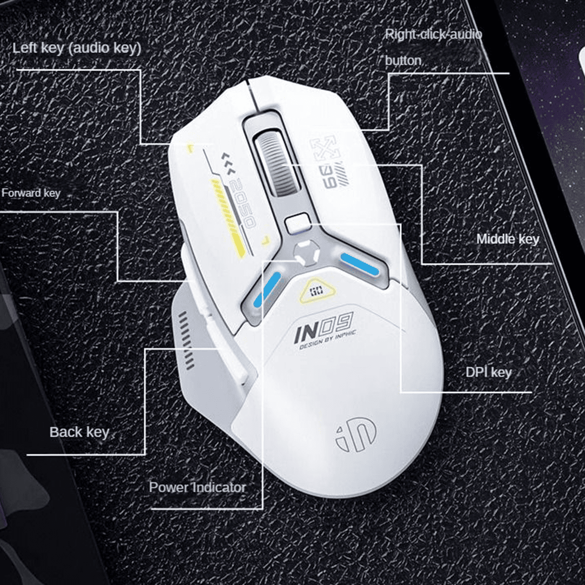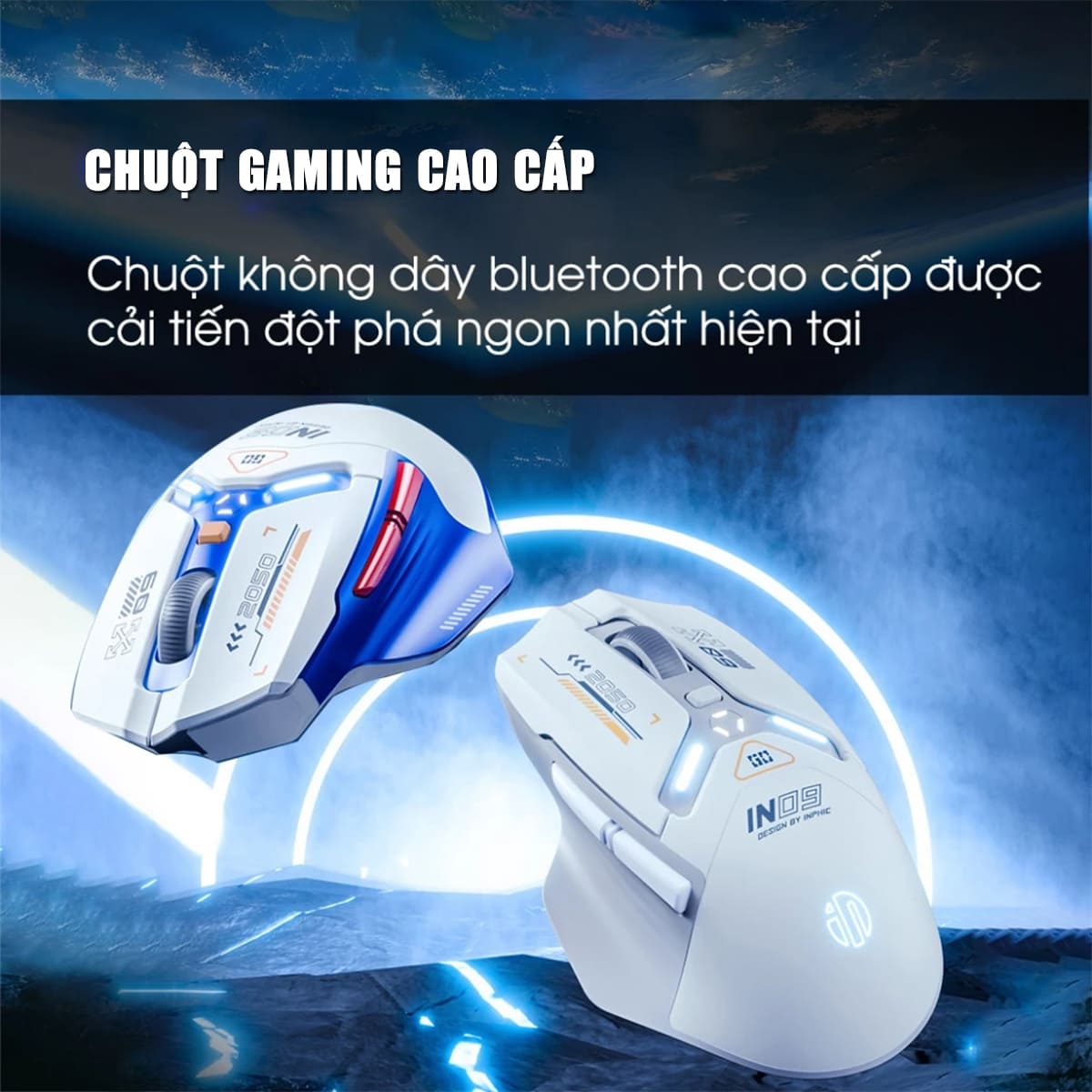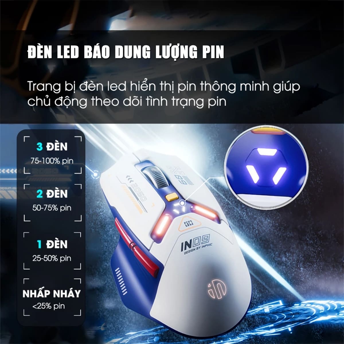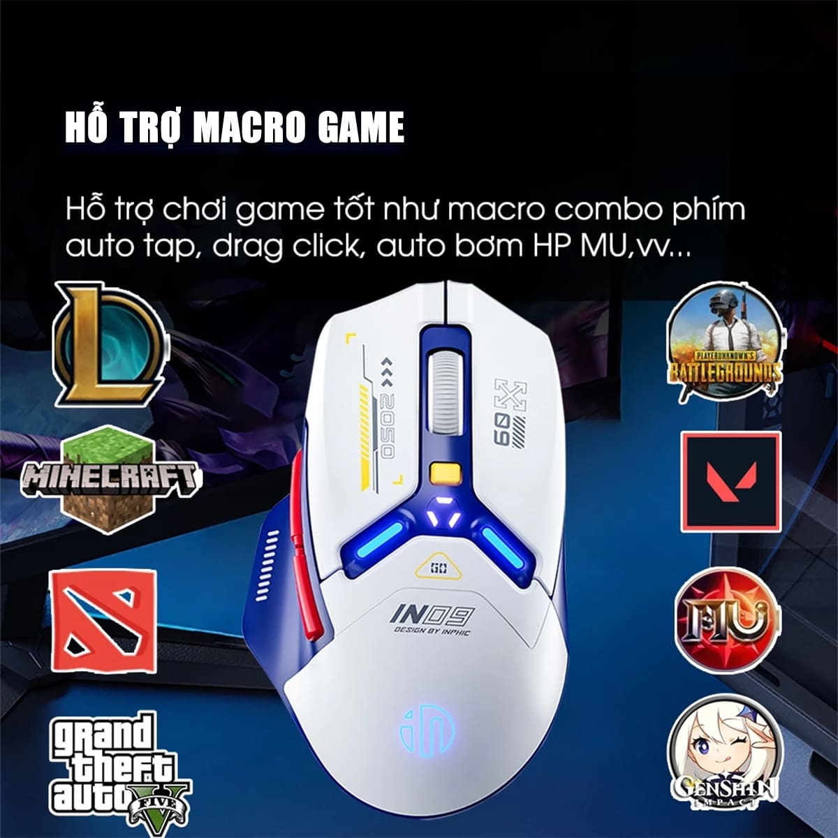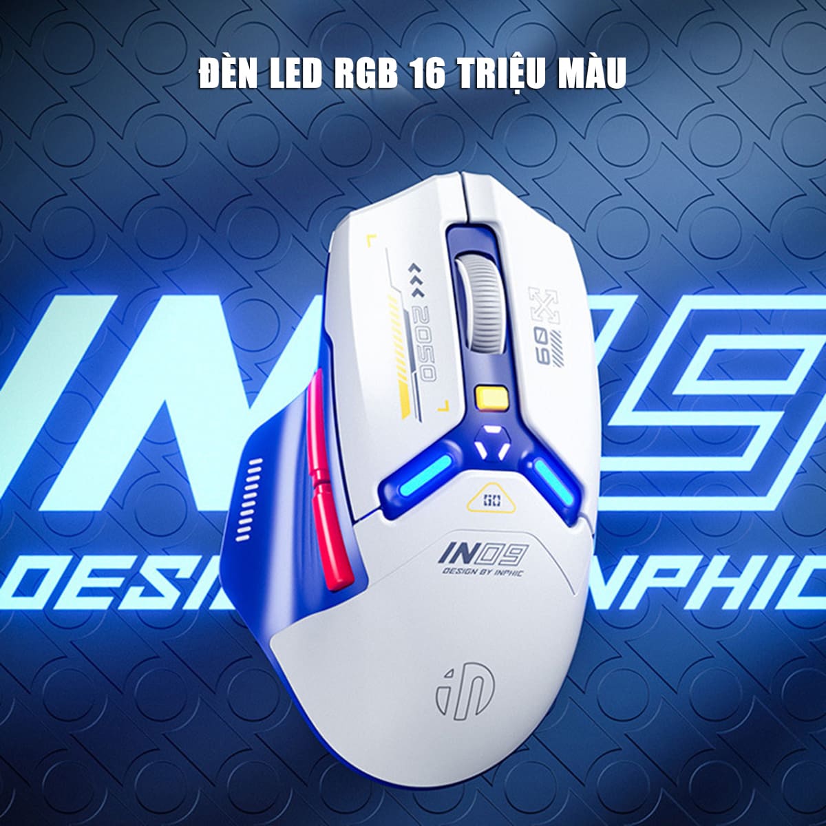 Chuột không dây Bluetooth Gaming Inphic IN9 3 chế độ kết nối pin sạc có App tùy chỉnh 10.000 DPI Led RGB