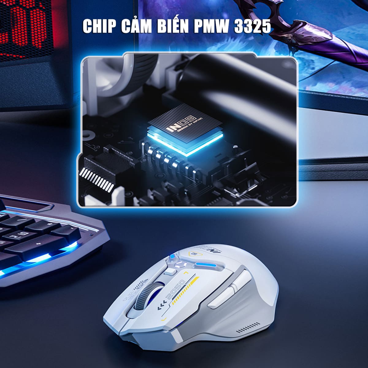 • Chip cảm biến PMW3325: Giúp giảm thiểu độ trễ và tăng độ nhạy, cho trải nghiệm mượt mà, đặc biệt với các tựa game đòi hỏi tốc độ và chính xác cao.
