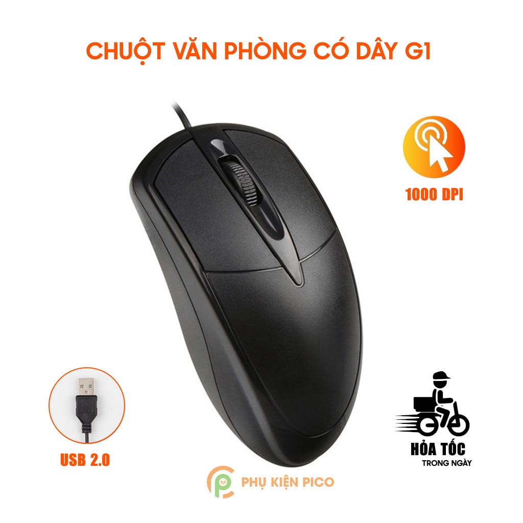 - Chuột văn phòng có dây G1 là dòng chuột giá rẻ hoạt động ổn định thiết kế với phòng cách tối giản gọn nhẹ.