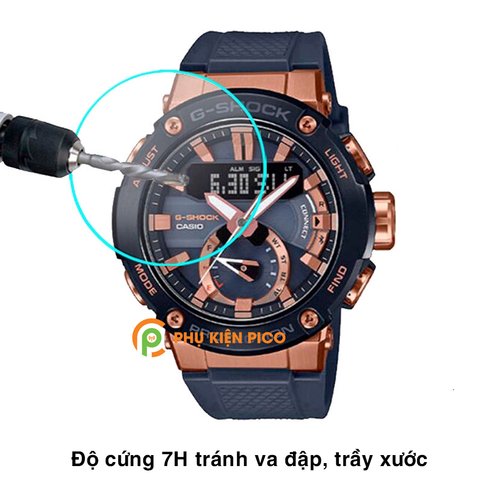 - Cường lực có độ cứng 7H giúp bảo vệ an toàn tránh va đập, trầy xước, chống bám bụi bẩn cho đồng hồ Casio GST-B200G.