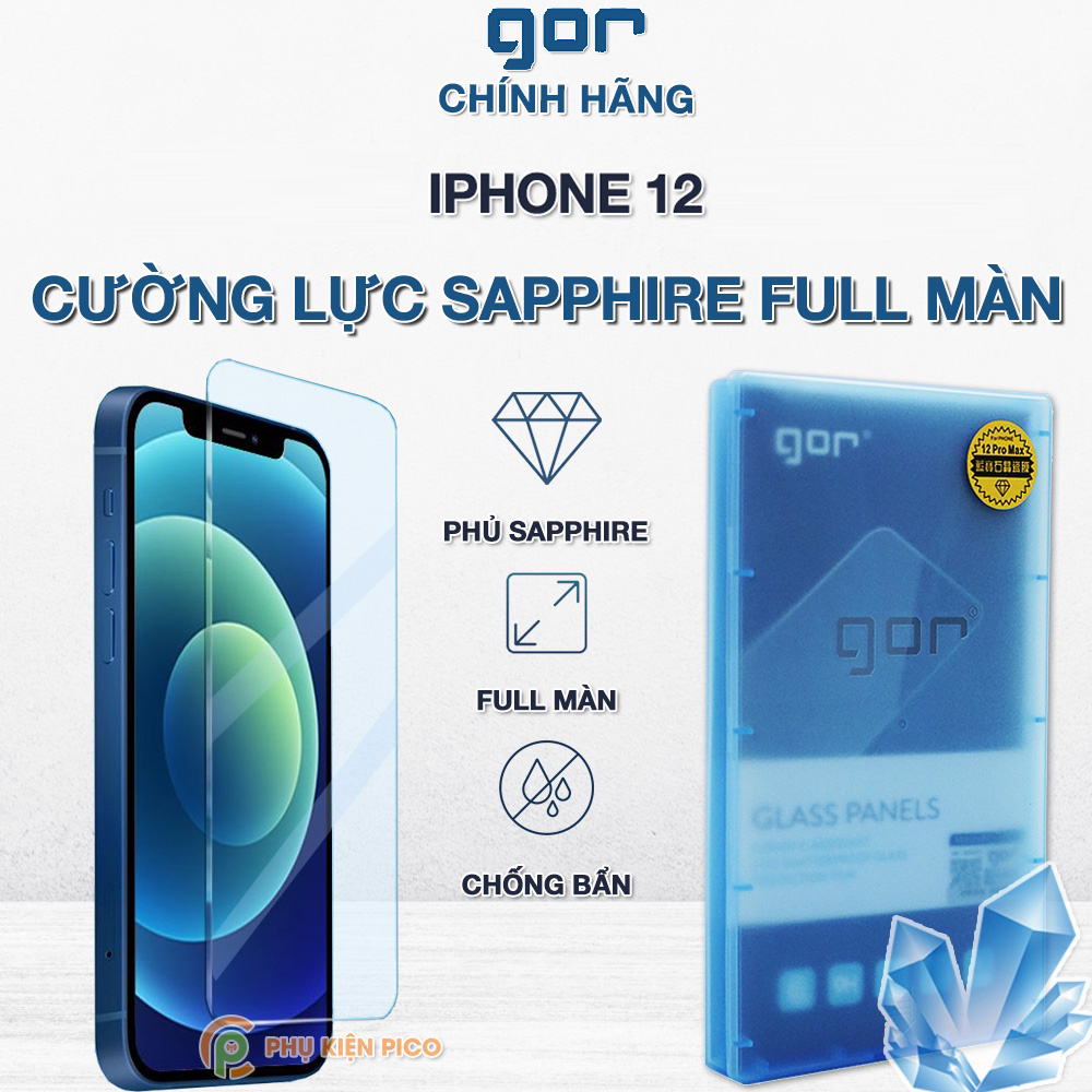 Cường lực Iphone 12 full màn hình chính hãng Gor bản mới cường lực sứ tinh thể Sapphire
