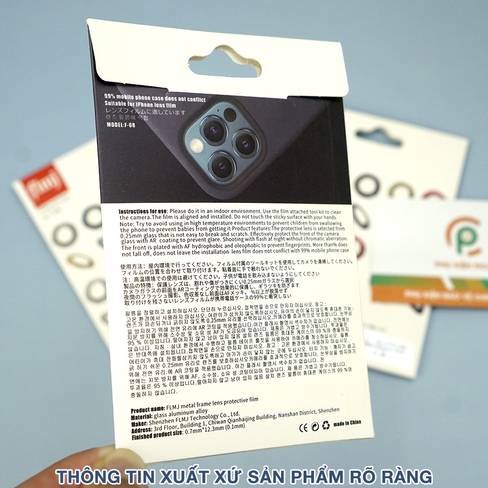 - Sản phẩm được cấu tạo từ 2 phần: Phần viền kim loại và phần kính cường lực có tác dụng bảo vệ mắt camera, tránh mẻ trầy xước và đập.