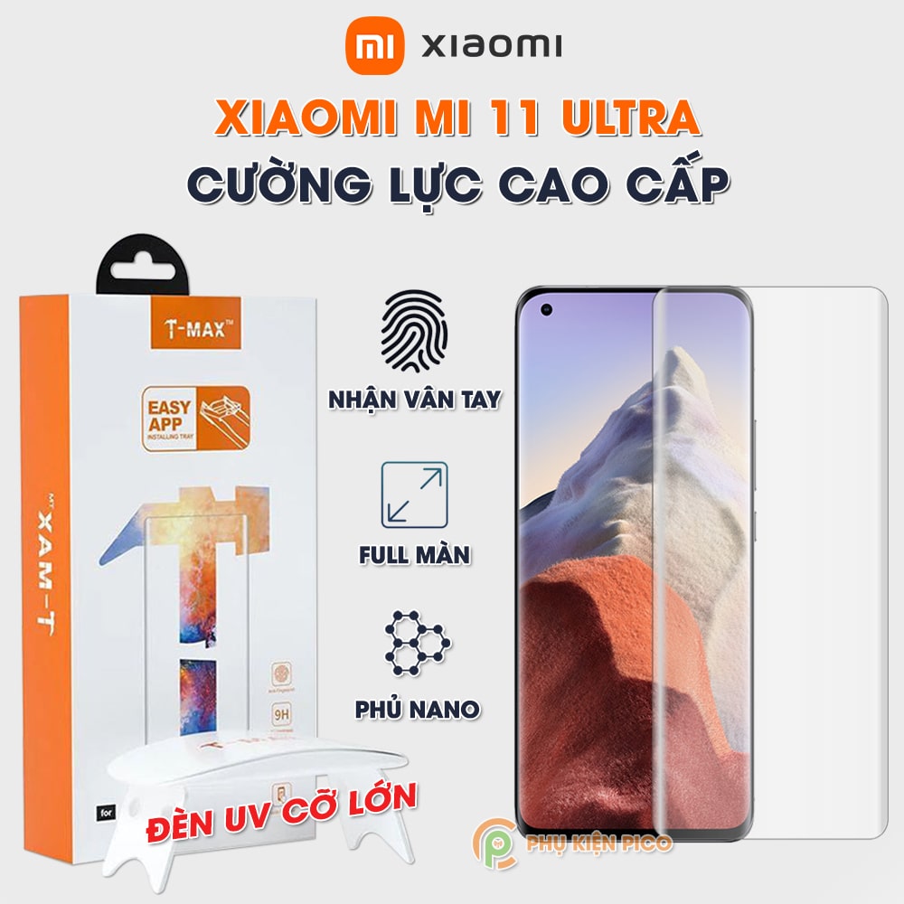Kính cường lực Mi 11 Ultra nhận vân tay màn hình đèn UV cỡ lớn T-Max – Dán dán mình Xiaomi Mi 11 Ultra