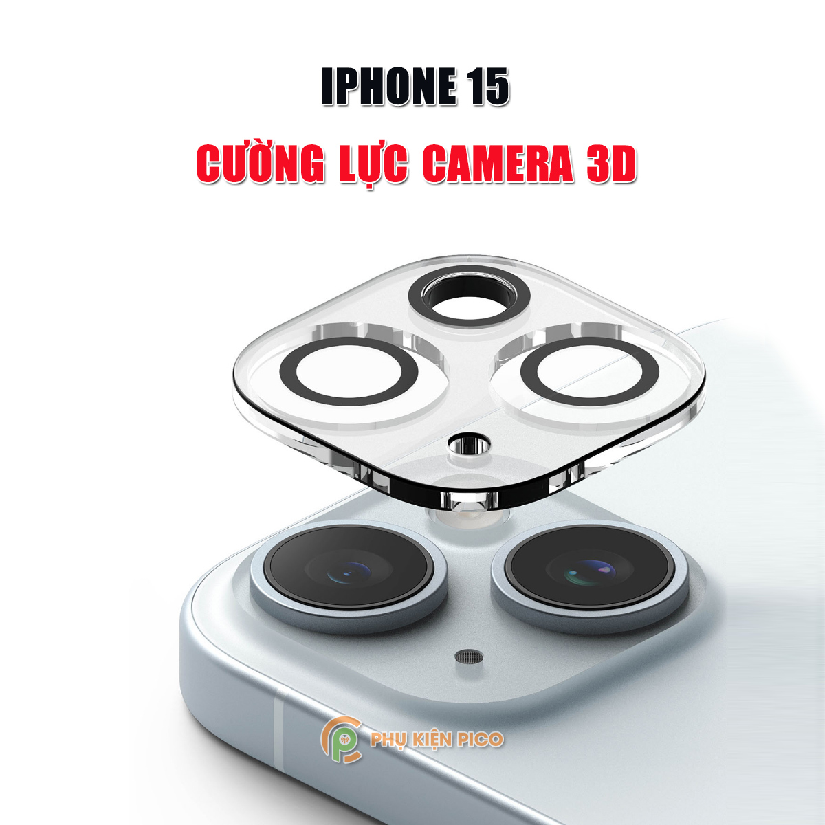 Dán camera Iphone 15 thấu kính nổi 3D – Cường lực camera Iphone 15 độ cứng 9H trong suốt