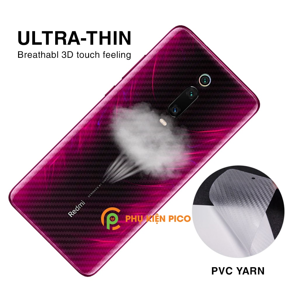 Dán lưng Mi 9T trong suốt nổi vân Carbon 3D tản nhiệt tốt – Dán lưng vân Carbon Xiaomi Mi 9T