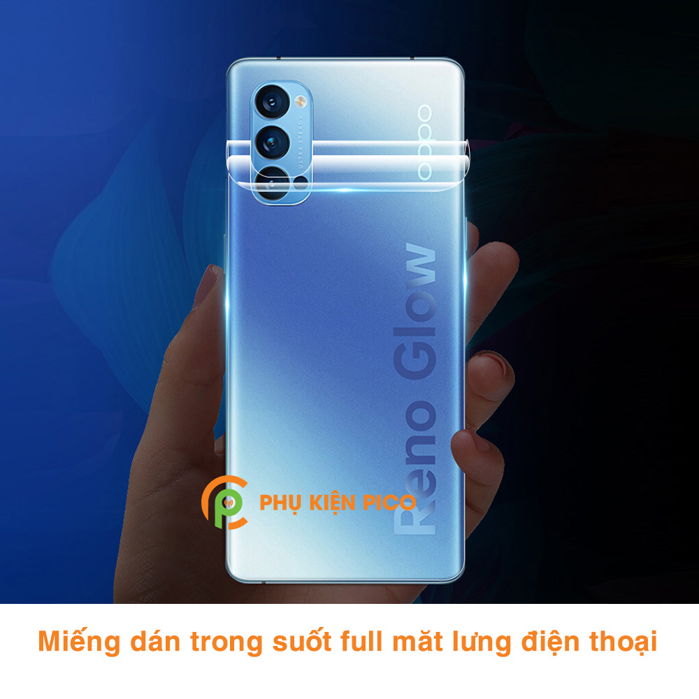 - Dán lưng Oppo Reno 4 là miếng dán FULL MẶT LƯNG trong suốt.