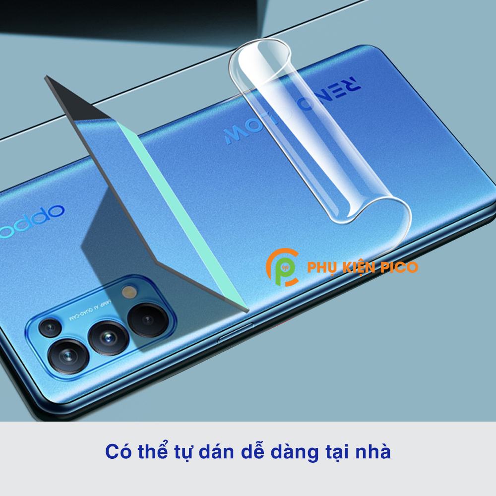 - Dán lưng Oppo Reno 5 là miếng dán dẻo trong suốt FULL MẶT LƯNG và VIỀN.