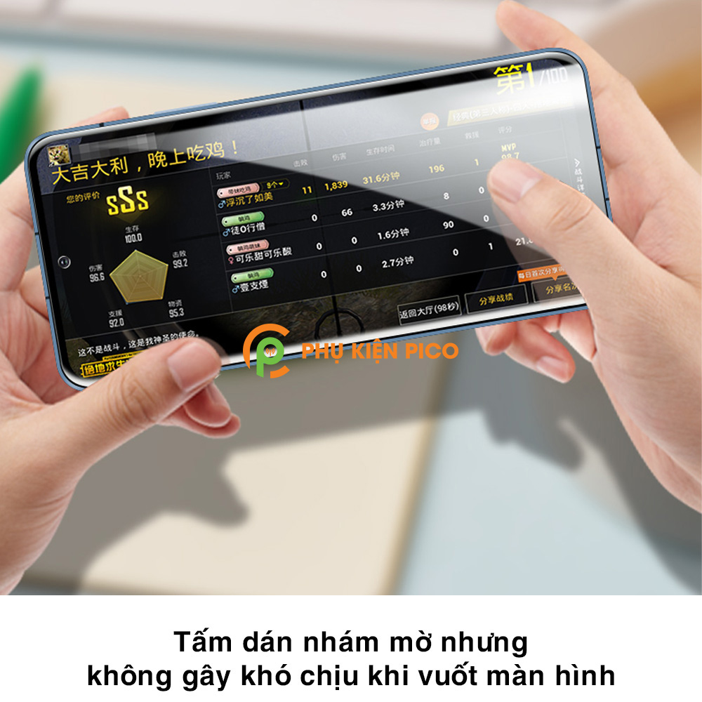 - Tấm dán nhám mờ nhưng không gây khó chịu khi vuốt màn hình, cảm biến vân tay vẫn có thể hoạt động tốt như sử dụng màn hình chính.