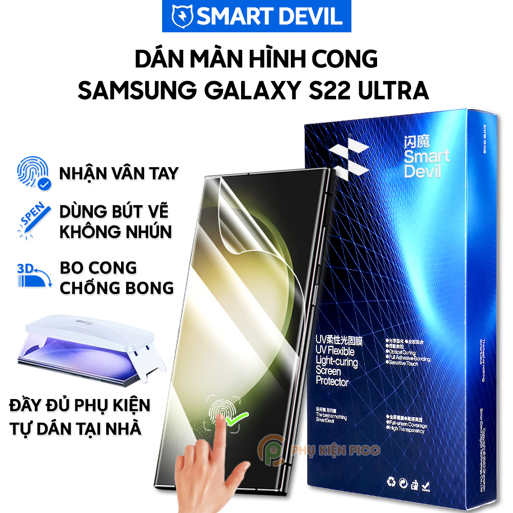 Dán màn hình Samsung S22 Ultra PPF UV Smart Devil full màn hình dẻo trong suốt – Dán PPF UV Samsung Galaxy S22 Ultra