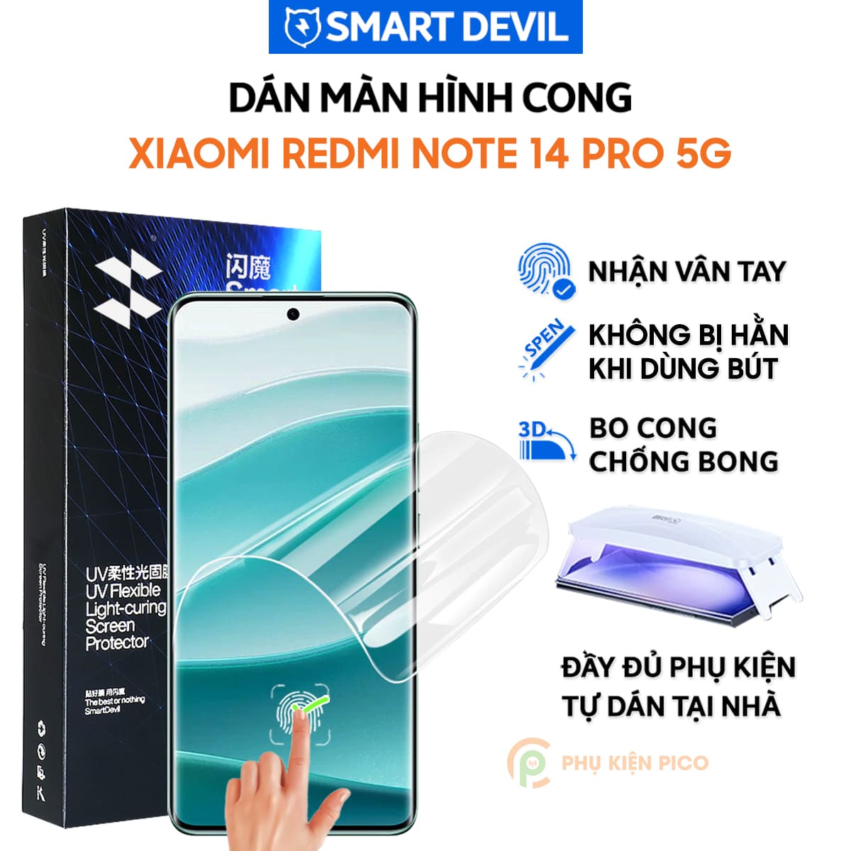 Dán màn hình Xiaomi Redmi Note 14 Pro 5G PPF UV Smart Devil full màn hình dẻo trong suốt