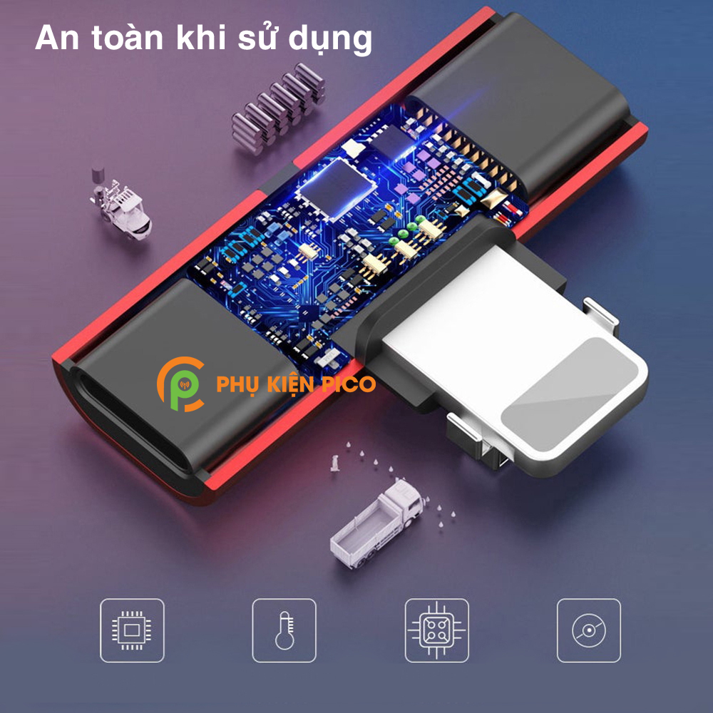 • Chia 1 cổng lightning thành 2 cổng lightning (1 cổng sạc lightning và 1 cổng tai nghe jack lightning).