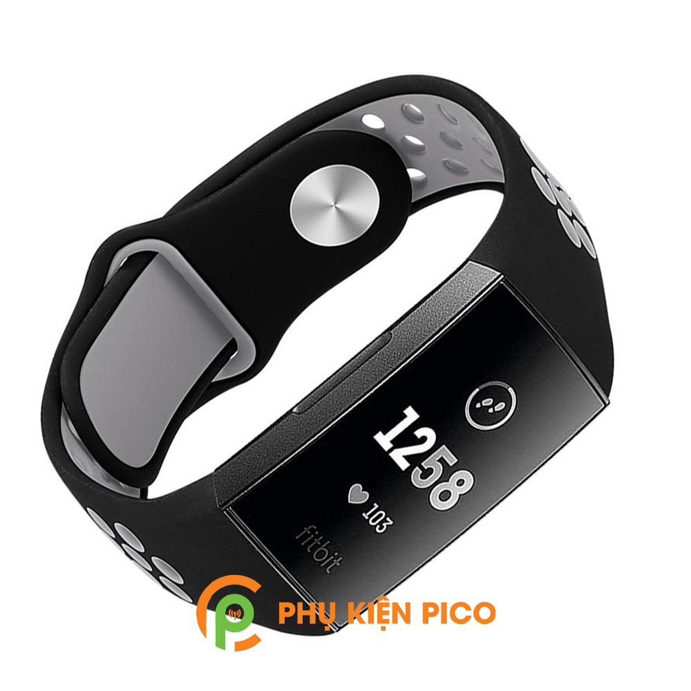 Dây đồng hồ Fitbit Charge 3 silicon hai màu đen xám có lỗ thoáng khí