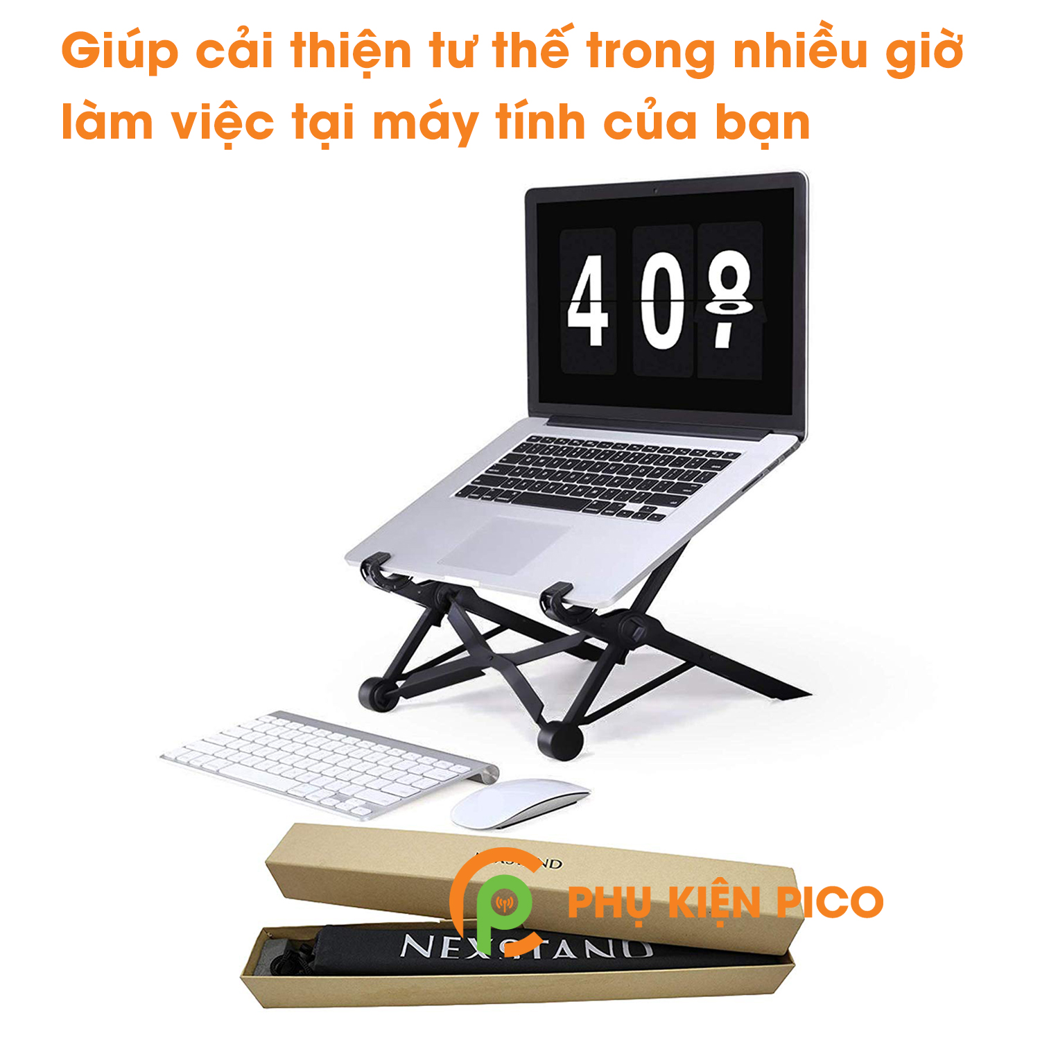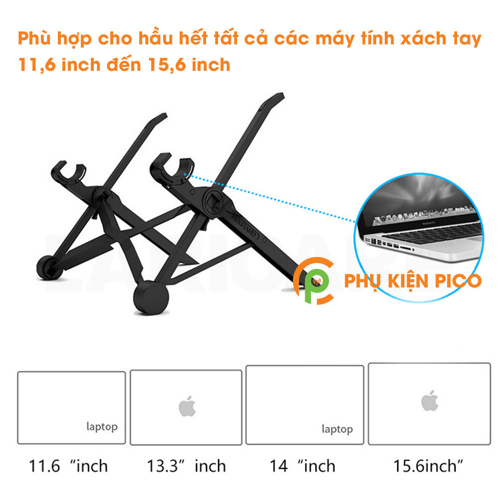 - Khi mở lên Nexstand được chế tạo để chứa bất kỳ máy tính xách tay kích thước nào: kích thước từ 5.5 – 12.6 inch.