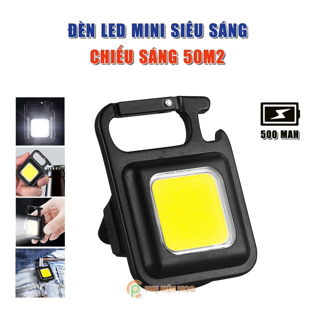 Đèn LED COB Mini siêu sáng 800 Lumens Pin sạc USB – Móc Khóa đèn pin mini led đa năng – Pin 500MAH