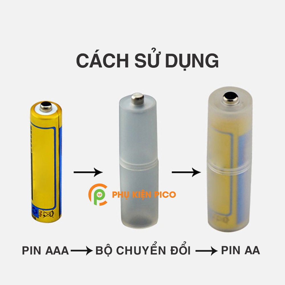 - Cách sử dụng: chỉ cần gắn pin AAA vào bộ chuyển đổi và sử dụng nó như 1 pin AA bình thường