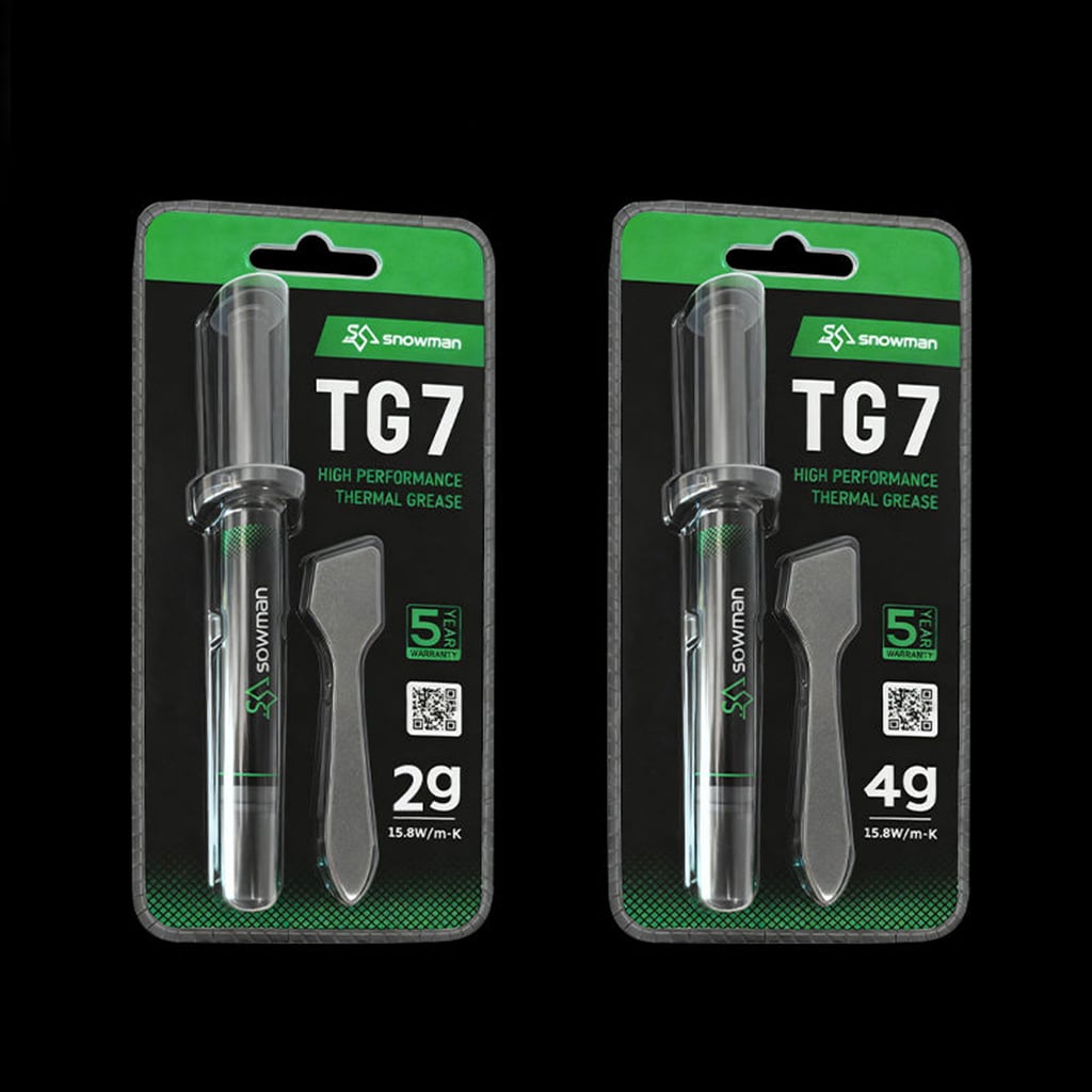 - Keo tản nhiệt TG7 là sản phẩm của hãng Snowman, đây là một hãng phụ kiện tản nhiệt mới nổi với hàng loạt sản phẩm tản nhiệt chất lượng cao với giá thành cực kỳ cạnh tranh.