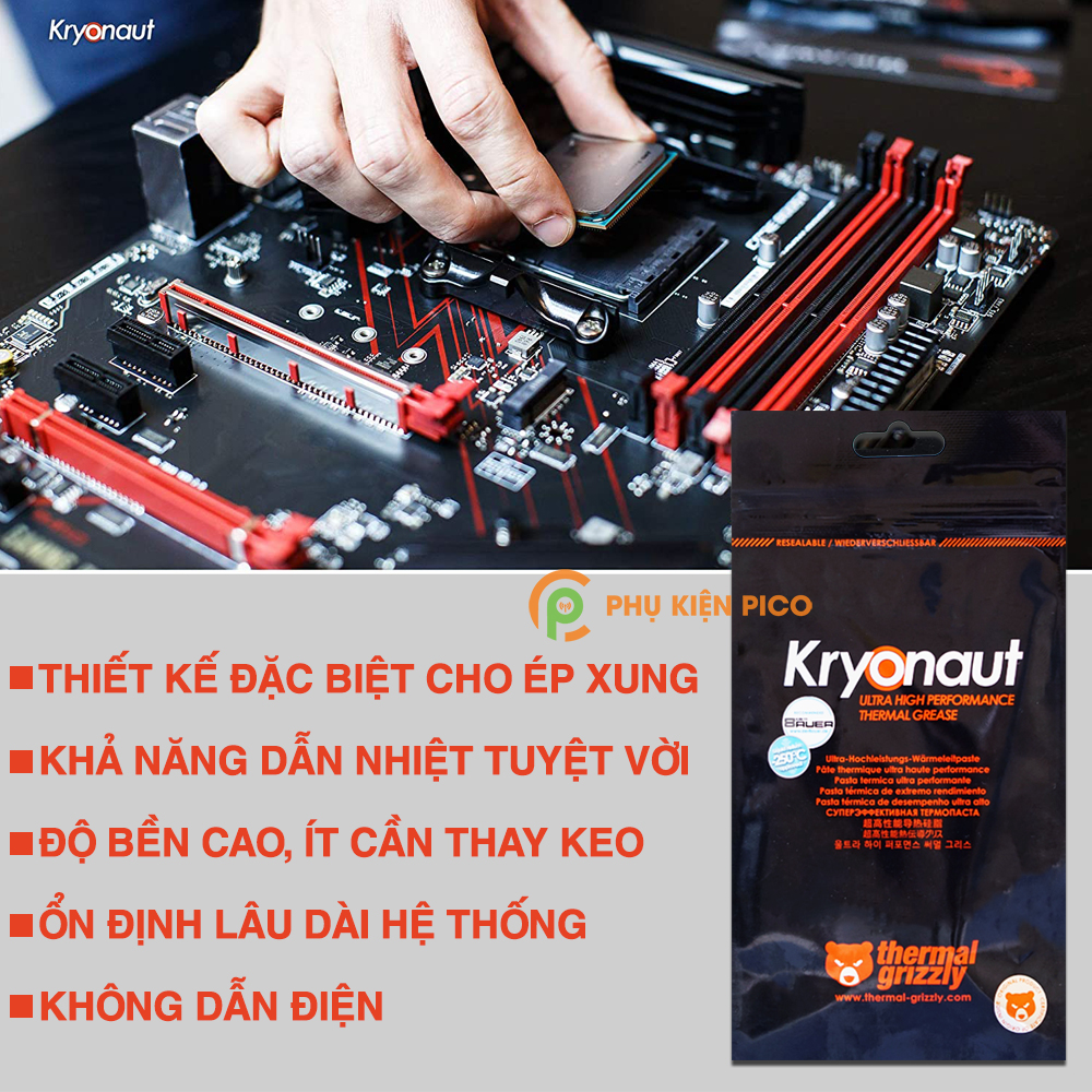 - Kem tản nhiệt Kryonaut được phát triển cho các ứng dụng cực kỳ khắt khe và đòi hỏi khắt khe nhất của cộng đồng ép xung.