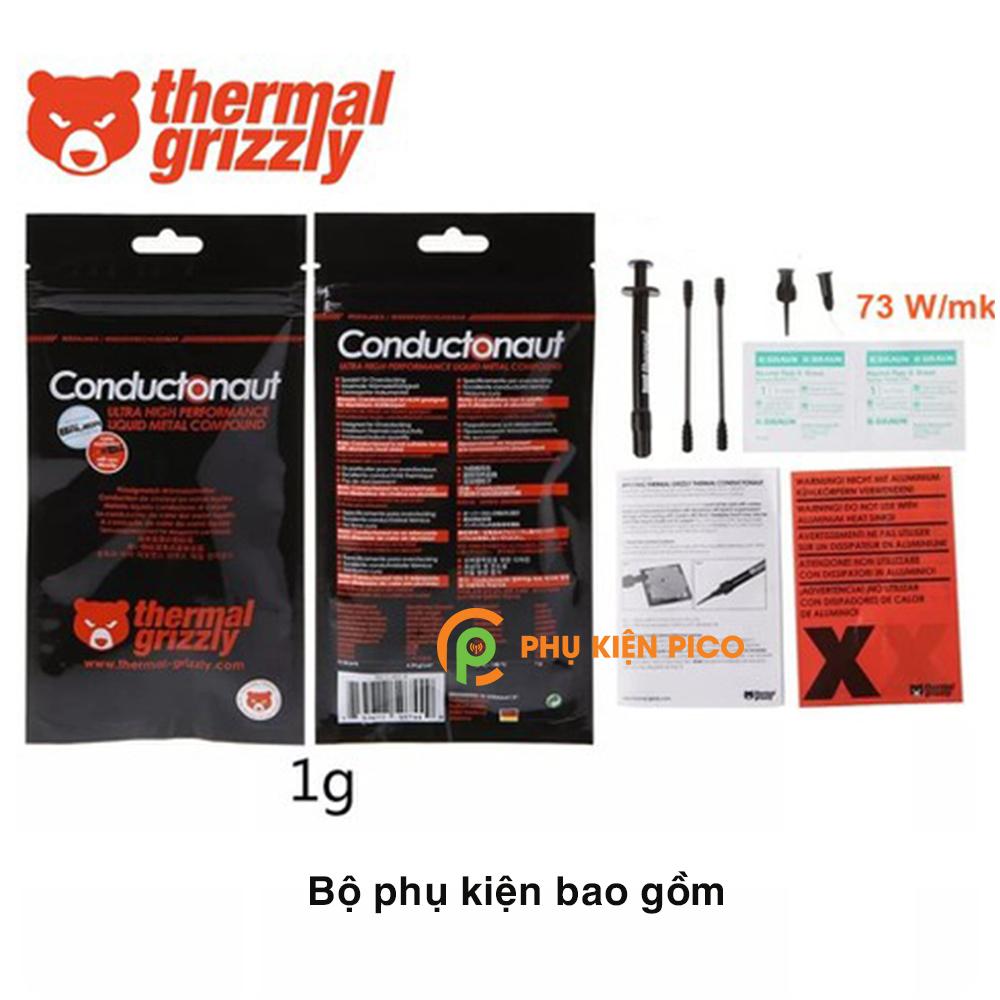- Thermal Grizzly Conductonaut xuất xứ từ Đức là dòng kem Liquid số 1 nhất thế giới, với thông số dẫn nhiệt lên tới 73w/mk gấp đôi Liquid Ultra.