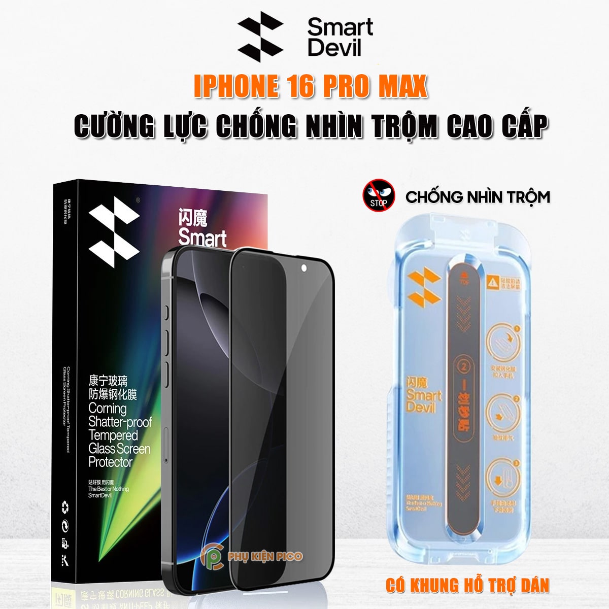 Kính cường lực chống nhìn trộm Iphone 16 Pro Max full màn hình khung tự dán hãng Smart Devil – Dán màn hình Iphone 16 Pro Max