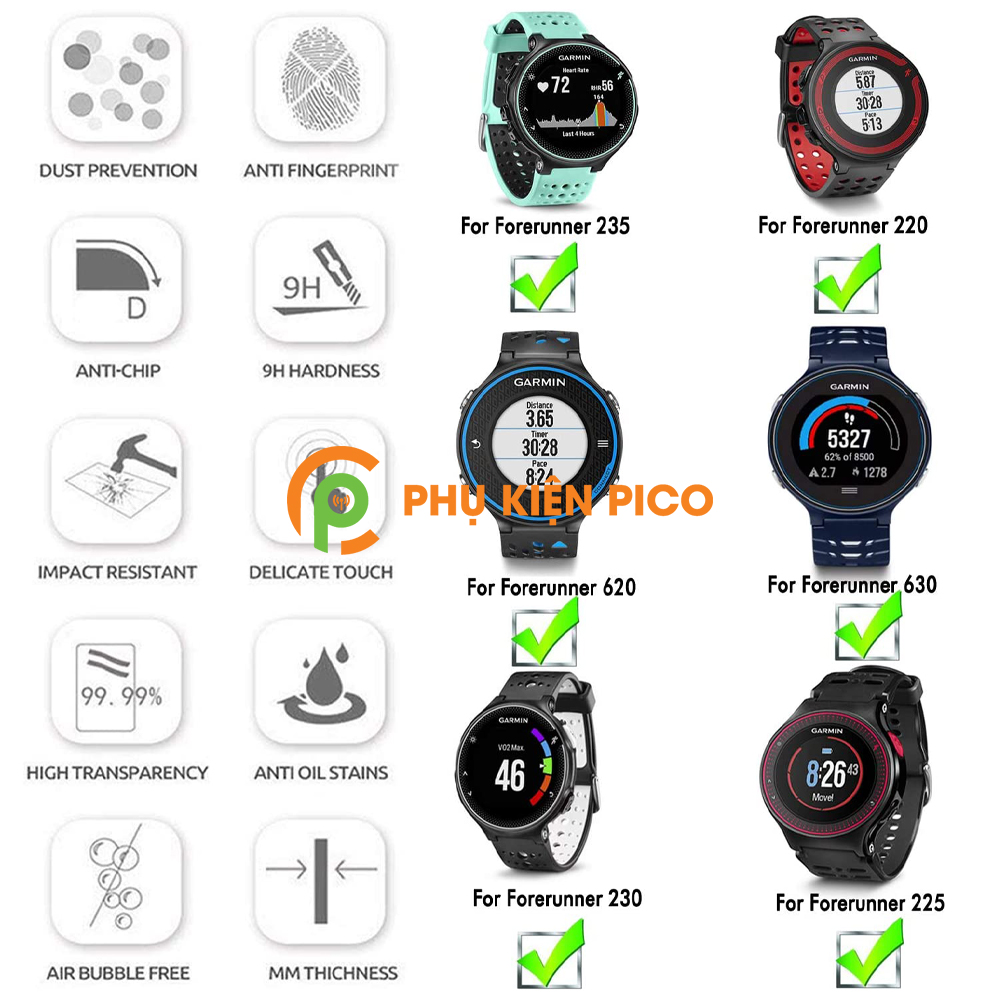 - Cường lực đồng hồ Garmin Foreruner 225/235/620/630 độ cứng 9H siêu bền chống vỡ, chống xước.