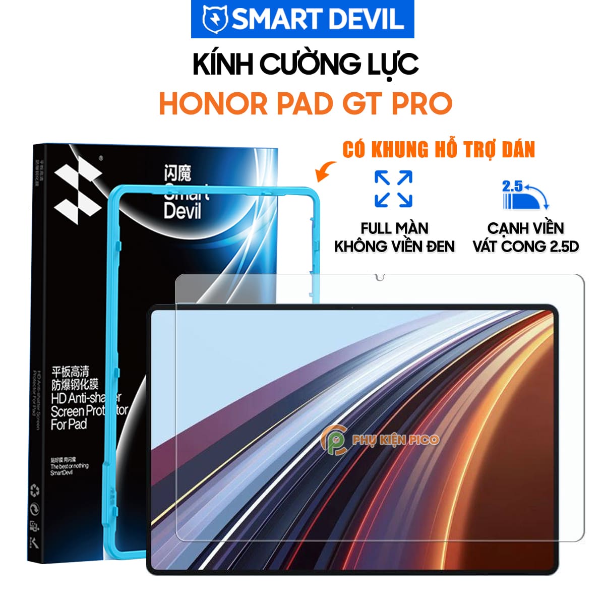 Kính cường lực Smart Devil dùng cho Honor Pad GT Pro 12.3 Inch full màn hình trong suốt không viền đen có khung hỗ trợ dán