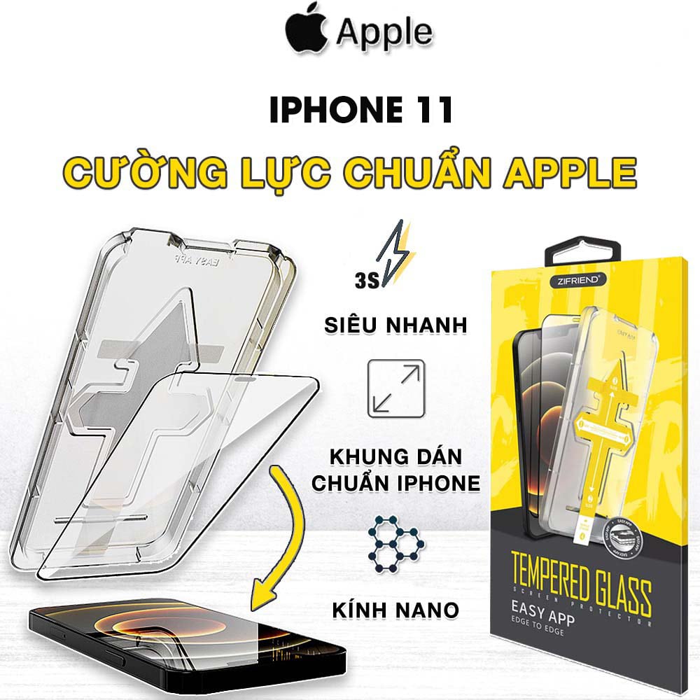 Kính cường lực Iphone 11 chính hãng ZIFRIEND khung dán tự động full màn hình viền đen siêu mỏng – Dán màn hình Iphone 11