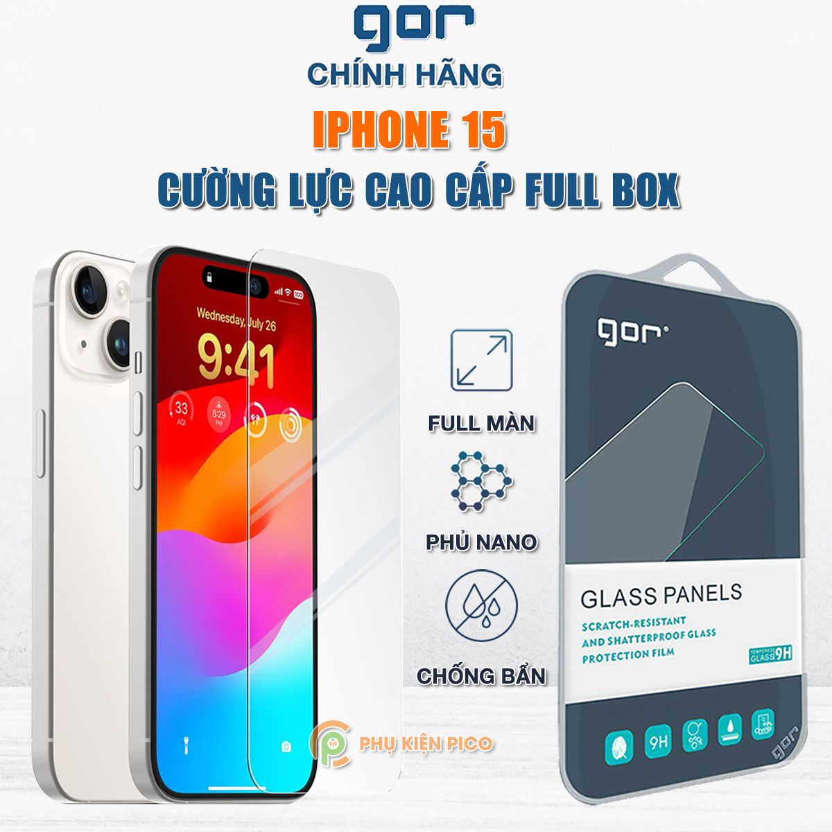 Kính cường lực Iphone 15 trong suốt full màn hình chính hãng GOR – Dán màn hình Iphone 15