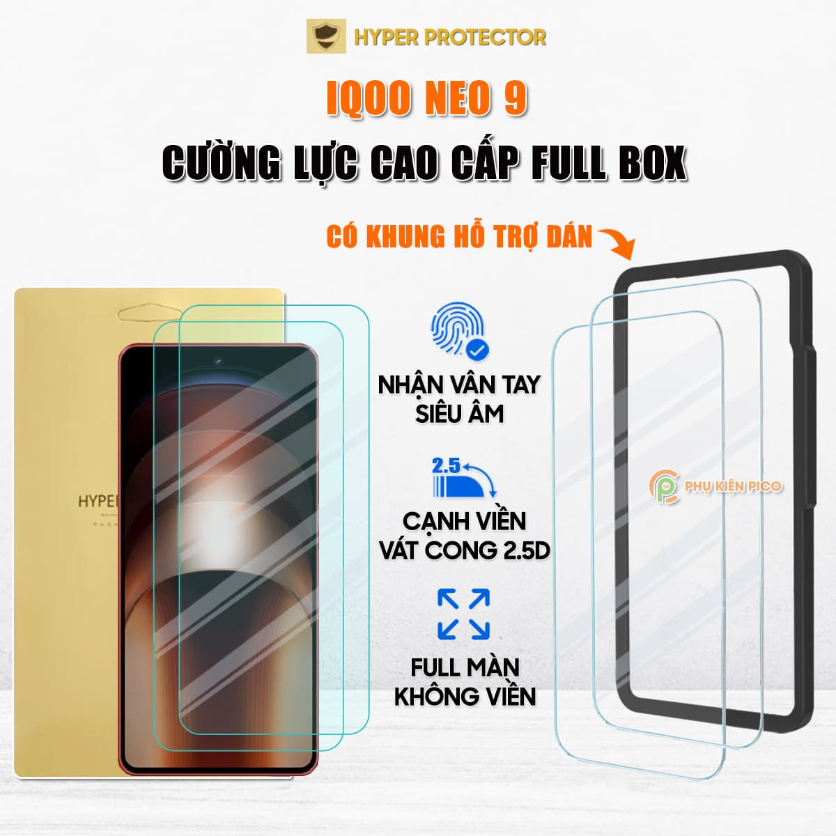 Kính cường lực iQOO Neo 9 trong suốt full màn hình không viền nhận vân tay siêu âm chính hãng HYPER+
