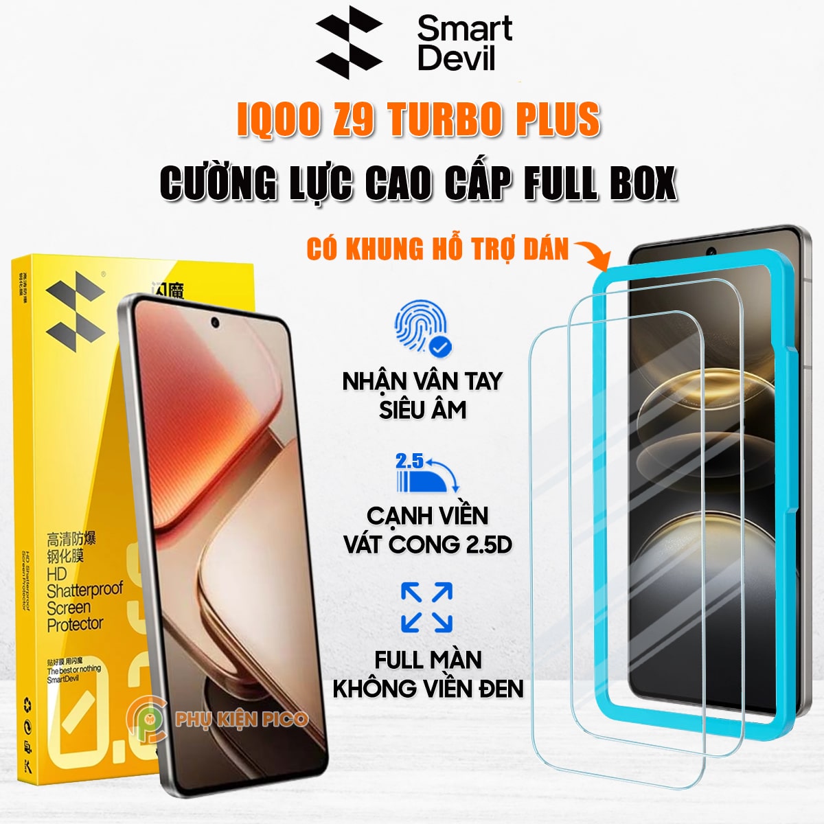 Kính cường lực iQOO Z9 Turbo Plus trong suốt full màn hình chính hãng Smart Devil – Dán màn hình Vivo iQOO Z9 Turbo Plus