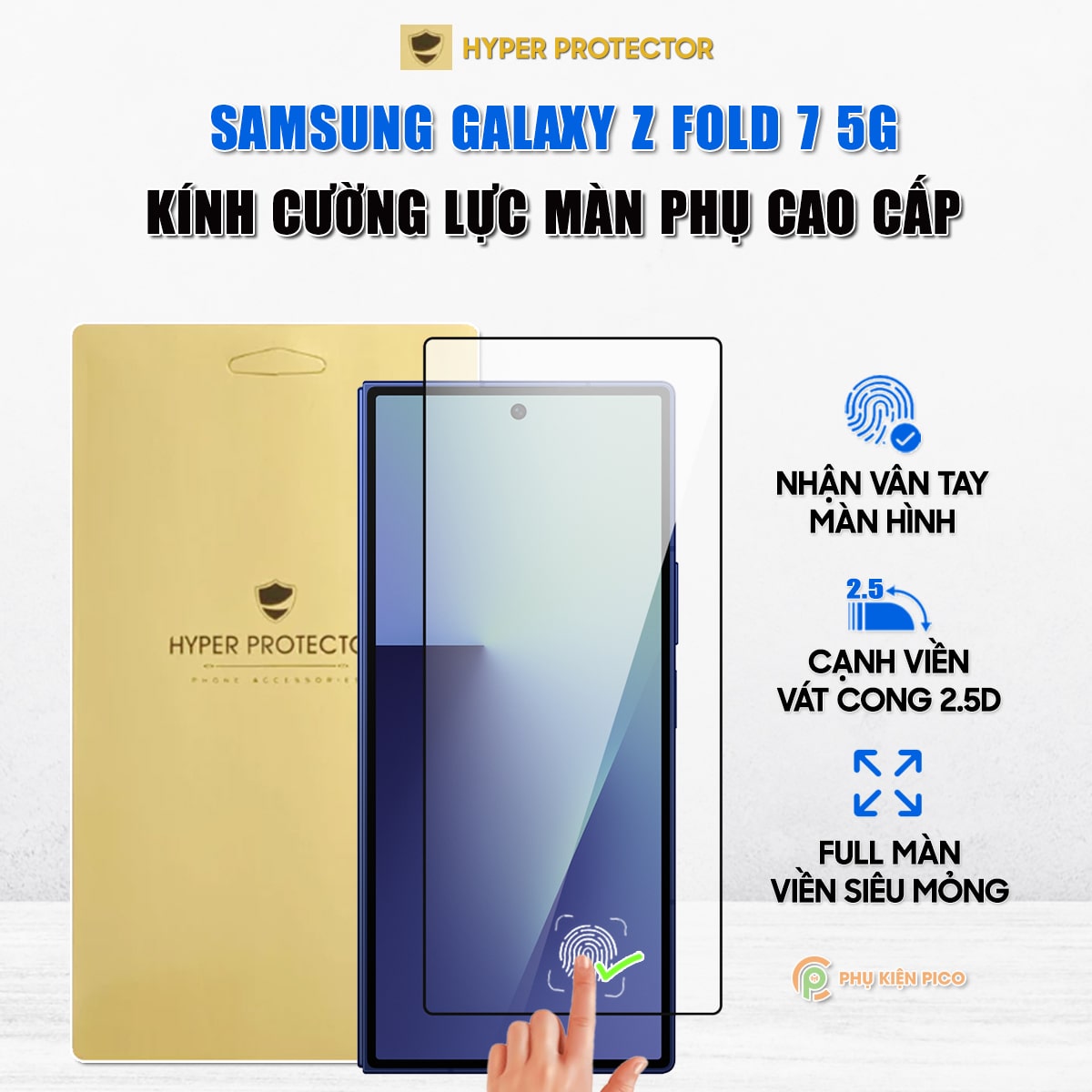 Kính cường lực Samsung Galaxy Z Fold 7 5G trong suốt full màn hình viền đen siêu mỏng nhận vân tay chính hãng HYPER+