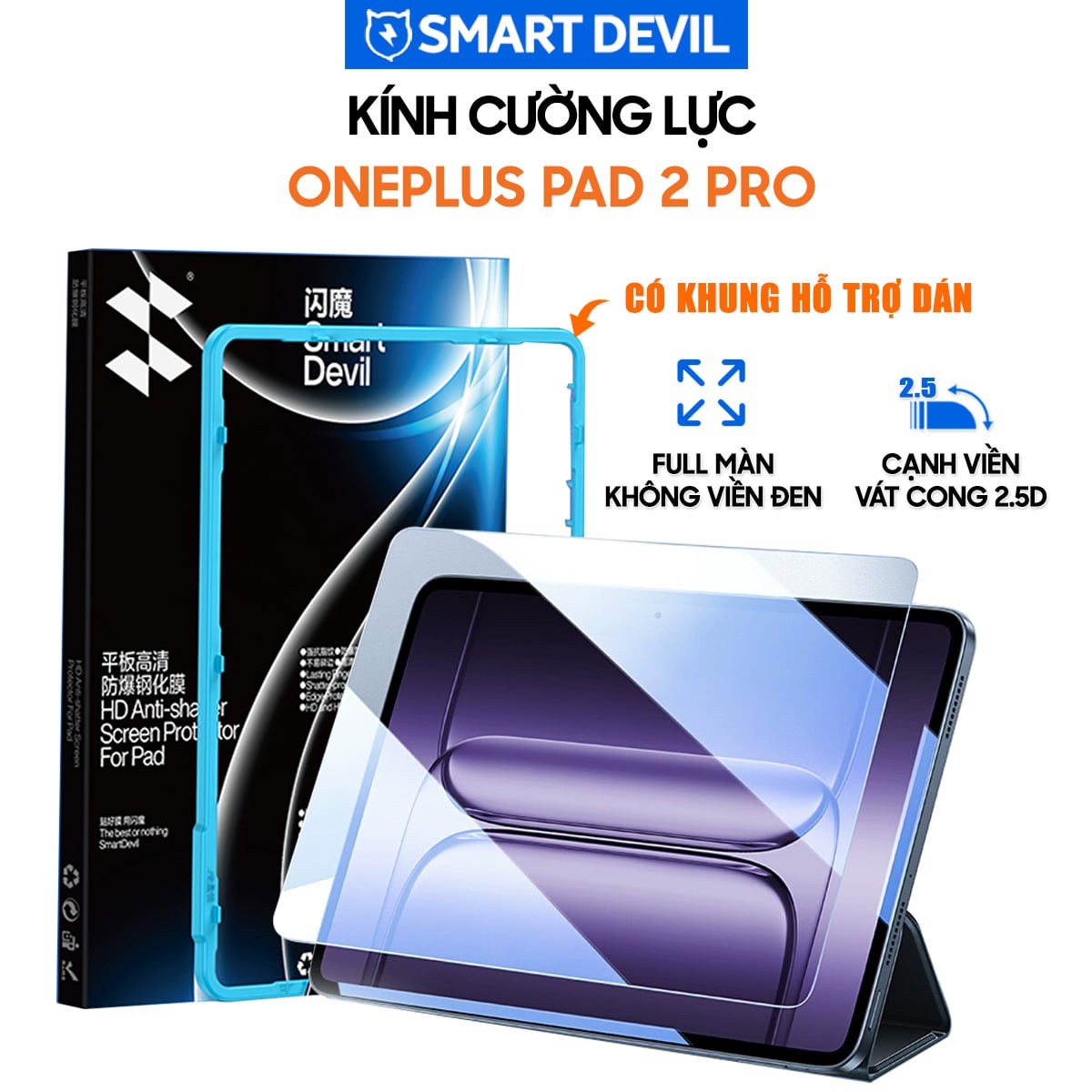 Kính cường lực Oneplus Pad 2 Pro full màn hình chính hãng Smart Devil có khung hỗ trợ dán – Dán màn hình Pad 2 Pro