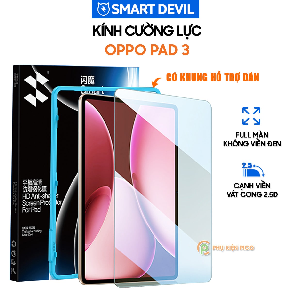 Kính cường lực Oppo Pad 3 full màn hình chính hãng Smart Devil có khung hỗ trợ dán – Dán màn hình Pad 3