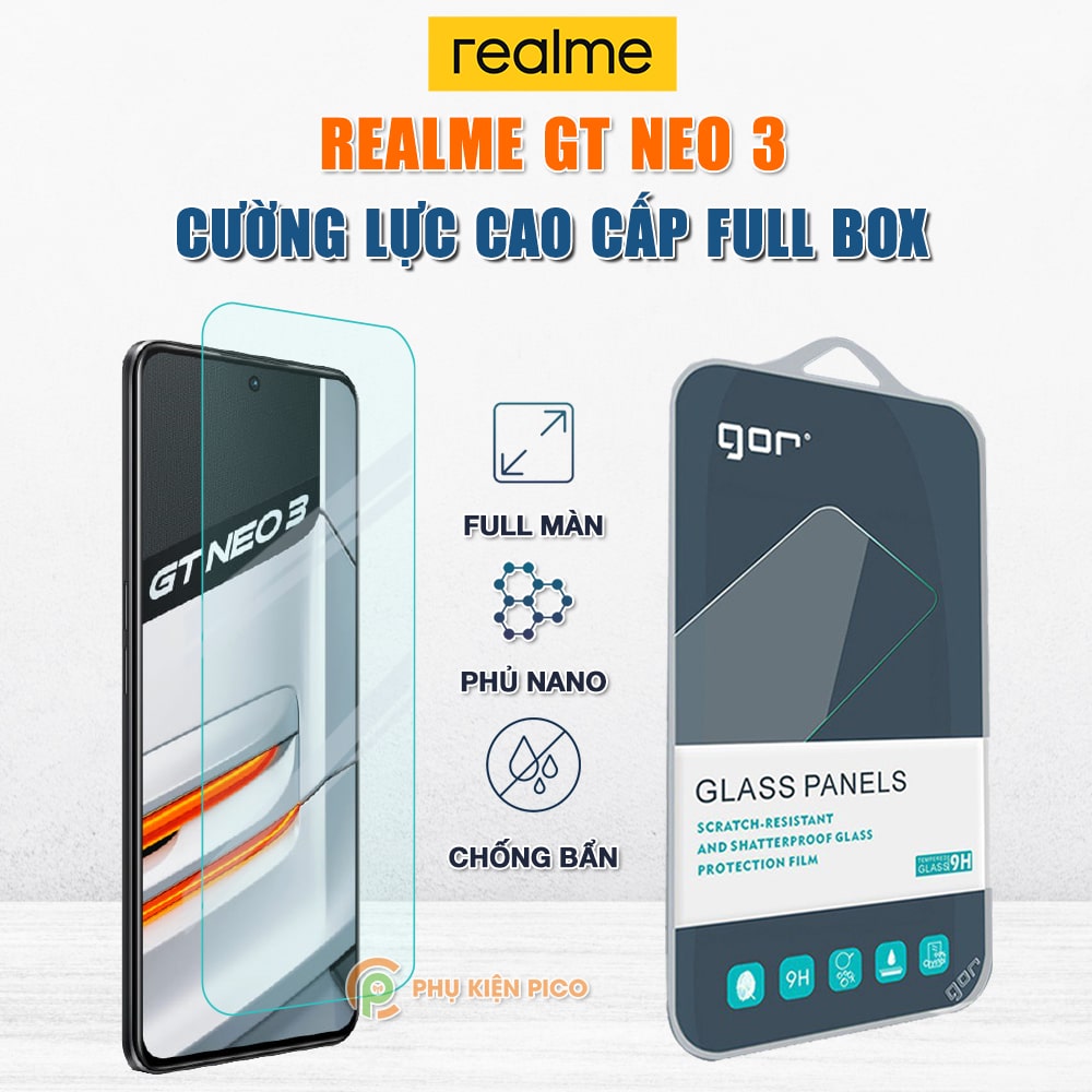 Kính cường lực Realme GT Neo 3 full màn hình chính hãng Gor phủ nano – Dán màn hình Realme GT Neo 3