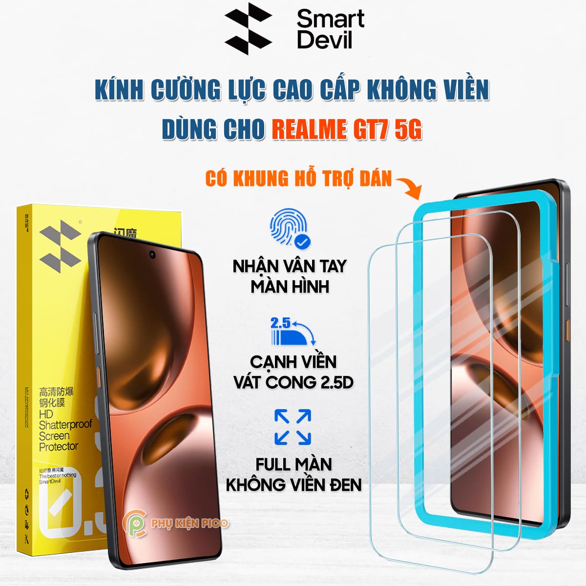 Kính cường lực Realme GT7 trong suốt full màn hình chính hãng Smart Devil có khung hỗ trợ dán
