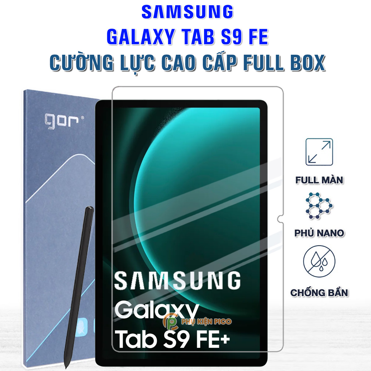 Kính cường lực Samsung Tab S9 FE full màn hình chính hãng Gor – Dán màn hình Samsung Galaxy Tab S9 FE