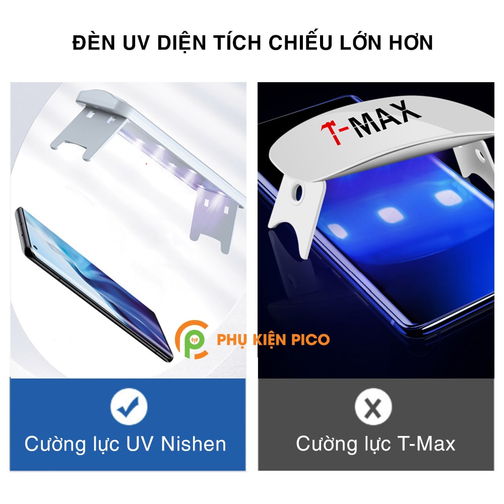 - Đèn UV Nishen có diện tích lớn hơn giúp giảm thời gian hong khô keo UV.