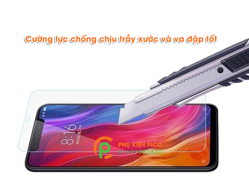 • Dán cường lực Xiaomi Mi 8 độ cứng 9H sẽ giúp bạn tránh sự trầy xước hay va đập do các tác nhân bên ngoài gây ra cho màn hình.