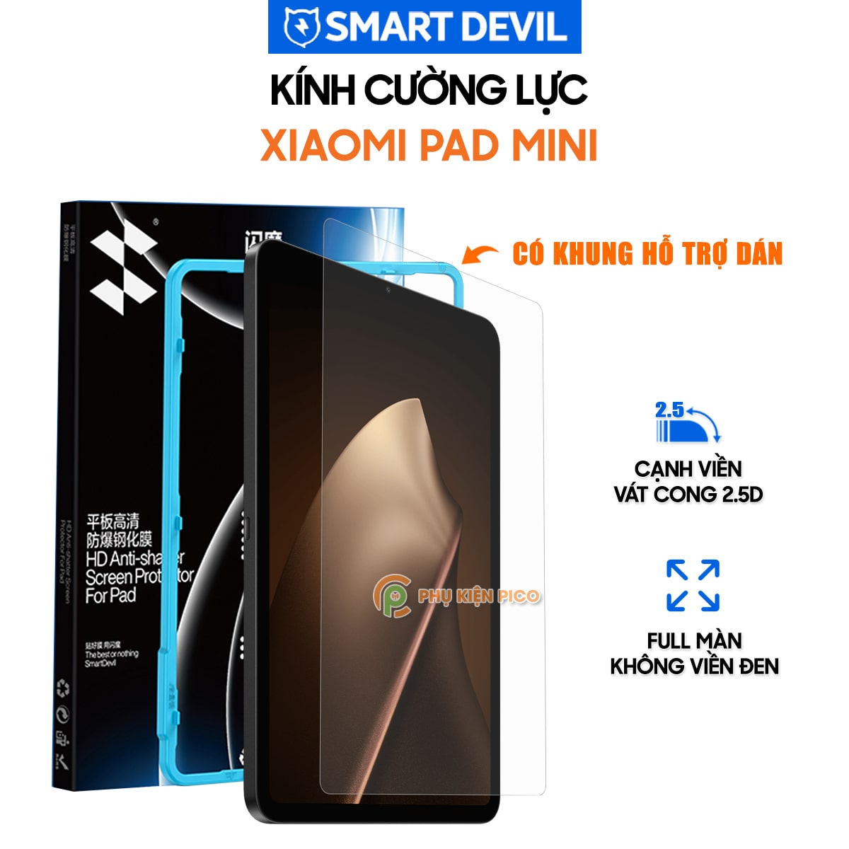 Kính cường lực Xiaomi Pad Mini full màn hình hãng Smart Devil có khung hỗ trợ dán – Dán màn hình Xiaomi Pad Mini