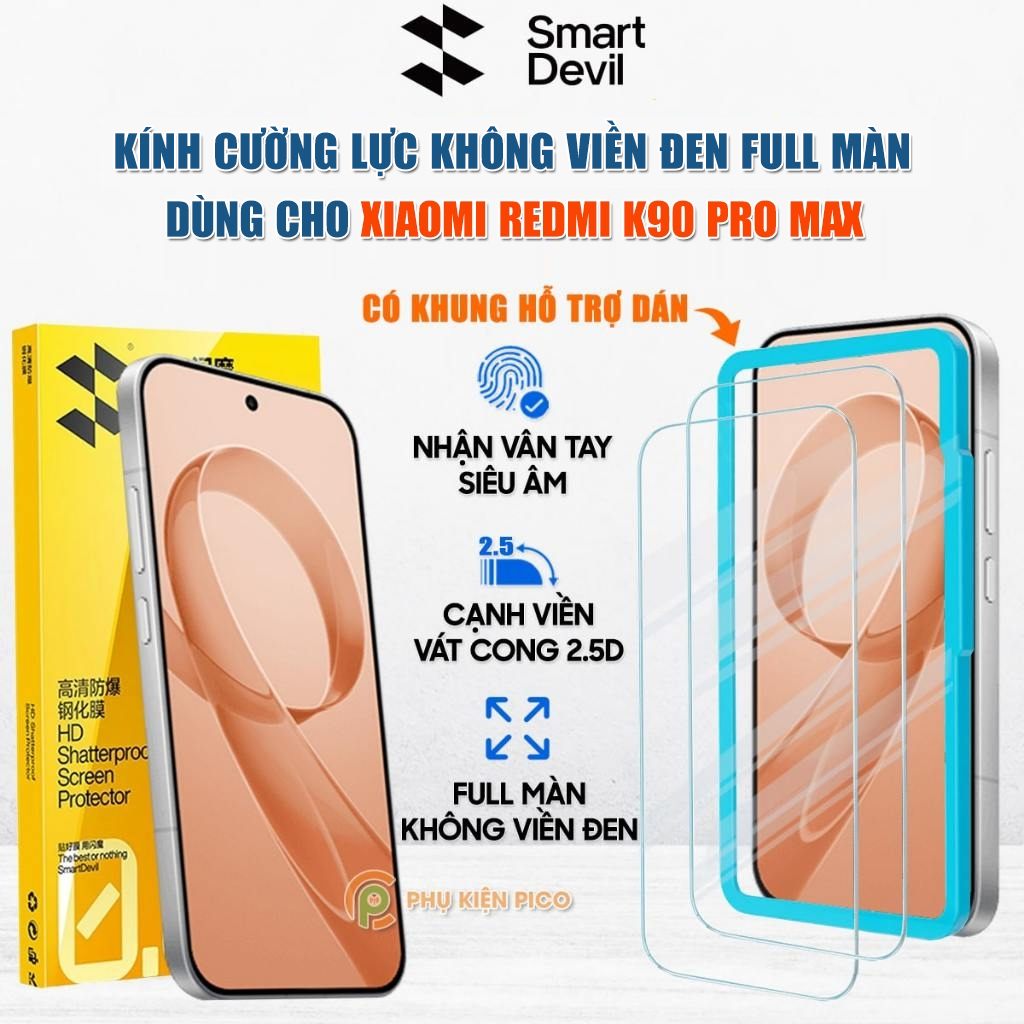 Kính cường lực Xiaomi Redmi K90 Pro Max trong suốt full màn hình Smart Devil có khung hỗ trợ dán màn hình Redmi K90 Pro Max