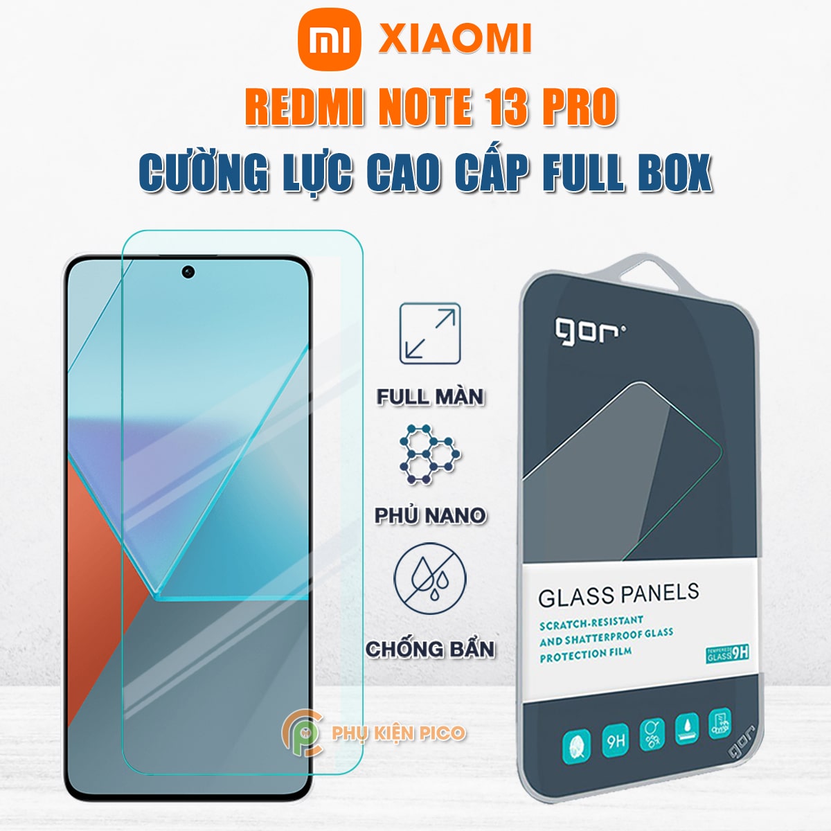 Kính cường lực Xiaomi Redmi Note 13 Pro full màn hình chính hãng Gor – Dán màn hình Xiaomi Redmi Note 13 Pro